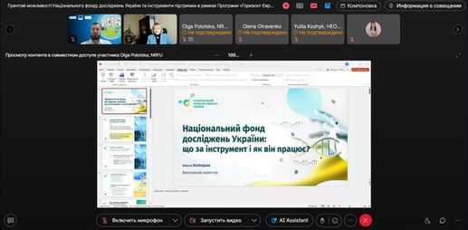 During the working part of the session, NRFU experts presented key funding instruments available to researchers and outlined Ukraine’s opportunities for participation in European Union programmes.